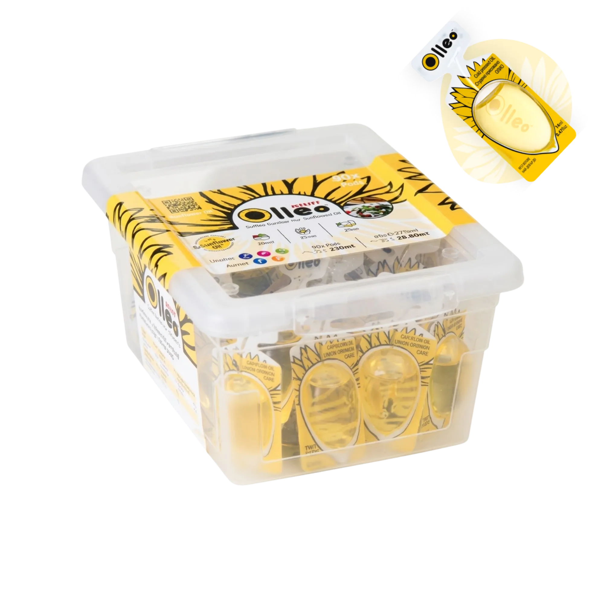 Кутии по 40 дози × 8 мл — перфектни за ресторанти, хотели и на път. Студено пресовано олио, без консерванти, без добавки.